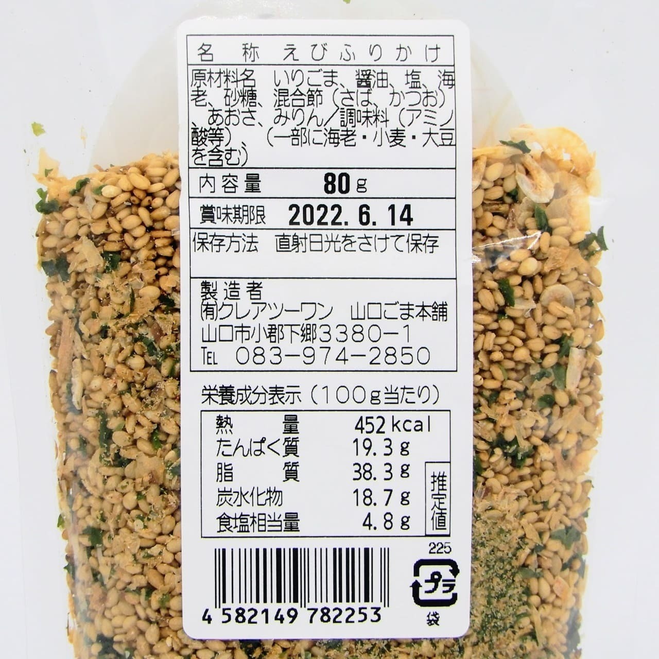 ごま(パラグアイ)、えび、醤油、かつおぶし、青のり、塩(原材料の一部に小麦、大豆を含む)