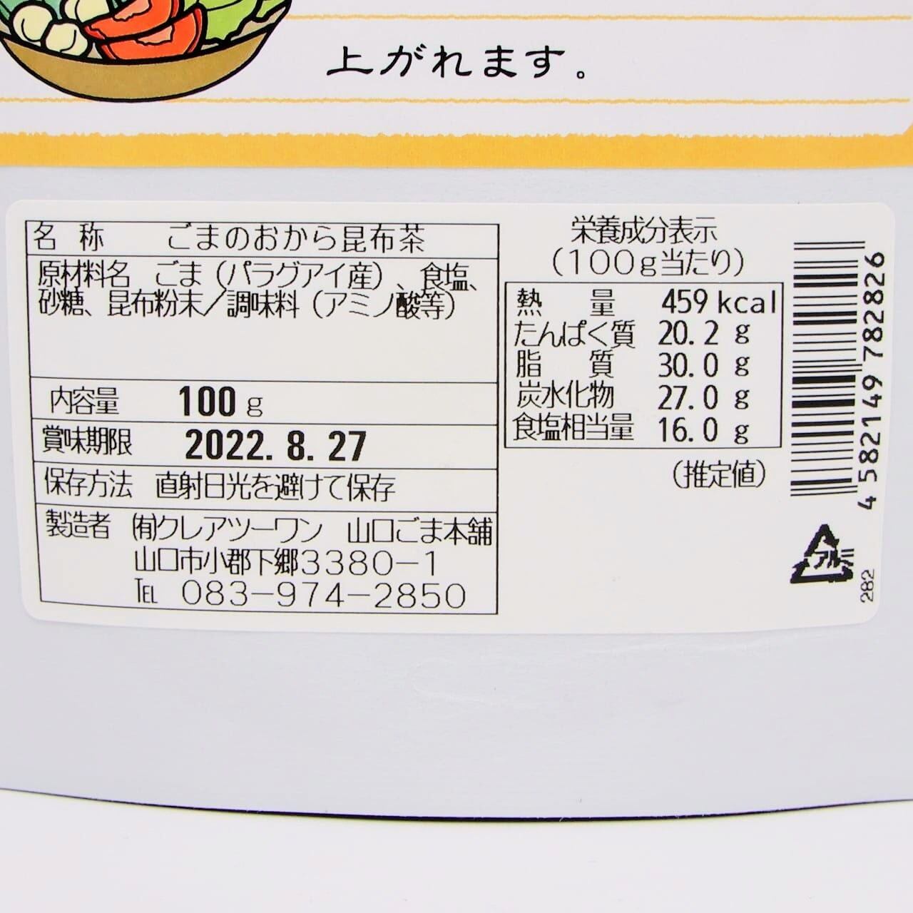 【原材料】ごま(パラグアイ産)、食塩、砂糖、昆布粉末/調味料(アミノ酸 等)