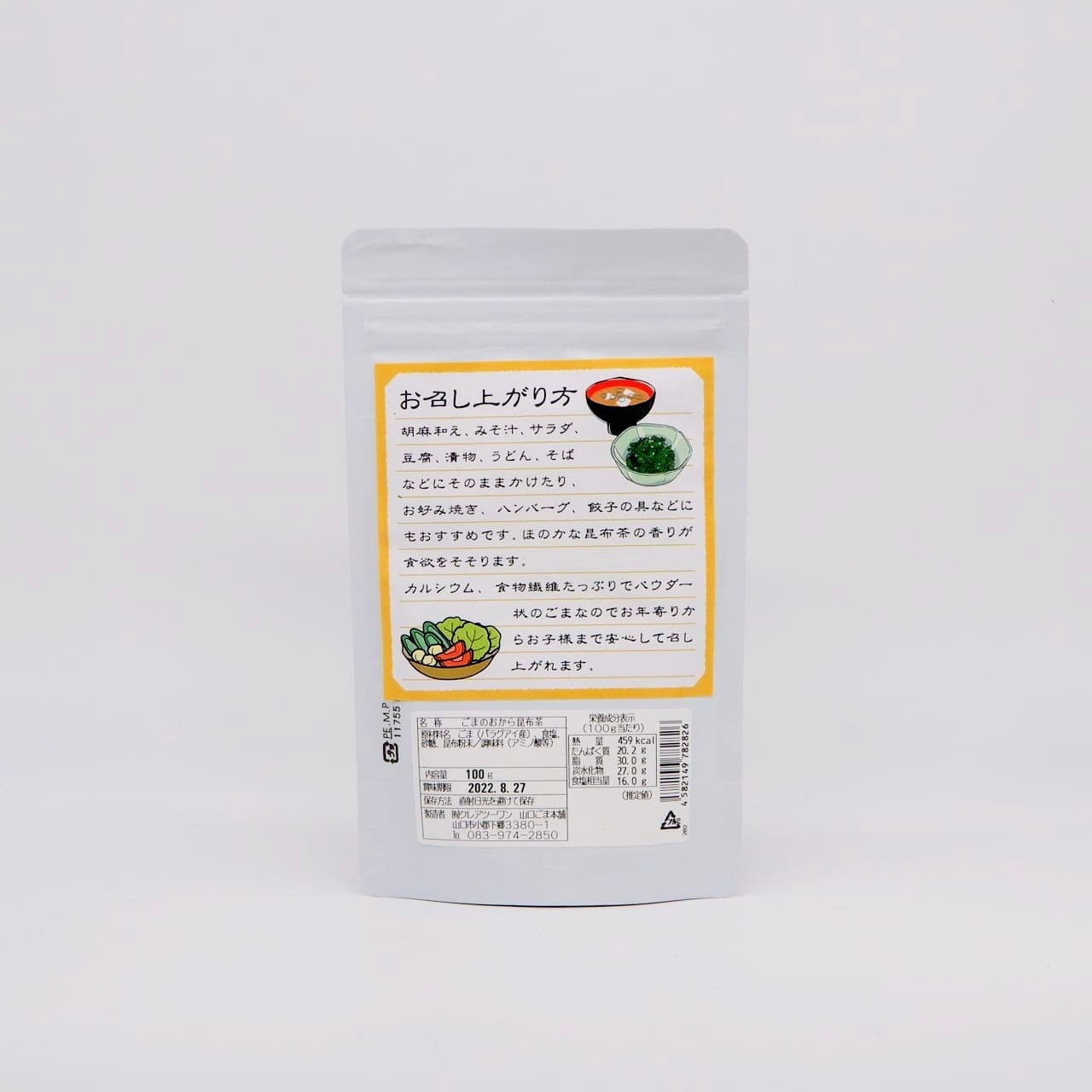 ごまのおからに昆布茶を配合しました。ごまの優しい風味とまろやかな味わいに、昆布のコクが絶妙にマッチ。サラダやおひたしなどに合わせて、ぜひご賞味ください!